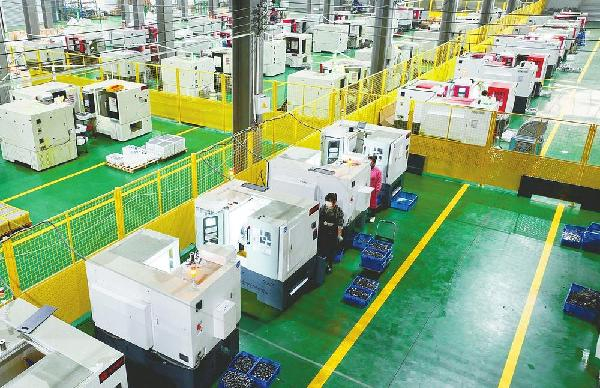 近日,隆尧经济开发区装备制造科创园水暖系列阀门产品生产车间,工人正在操控智能数控机床生产阀门产品。